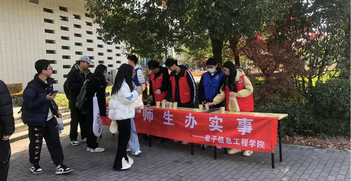 为深入贯彻落实学校关于“我为师生办实事”实践活动的会议精神,切实提高服务质量、服务水平,努力为学校广大师生办实事、办好事,满足师生合理诉求,大力提升广大师生的幸福感和归属感,2023年12月7日,电子信息工程学院联合后勤管理处开展了“服务融真情,姜茶暖人心”校园活动。