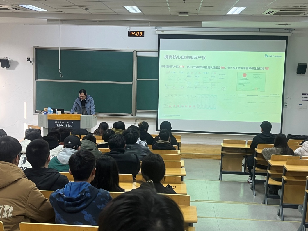 为深入探索校企协同、合作育人等高校人才培养模式,促进师生深入了解企业,帮助学生进一步了解科技型企业的招聘准则、技术前沿和职业规划,提升职场竞争力,2023年11月29日下午在思泉楼110教室,我院特邀集萃深度感知技术研究所有限公司(以下简称深度感知技术研究所)副总经理汪宗洋为21级人工智能专业和信息工程专业学生开展创新创业专家讲座。