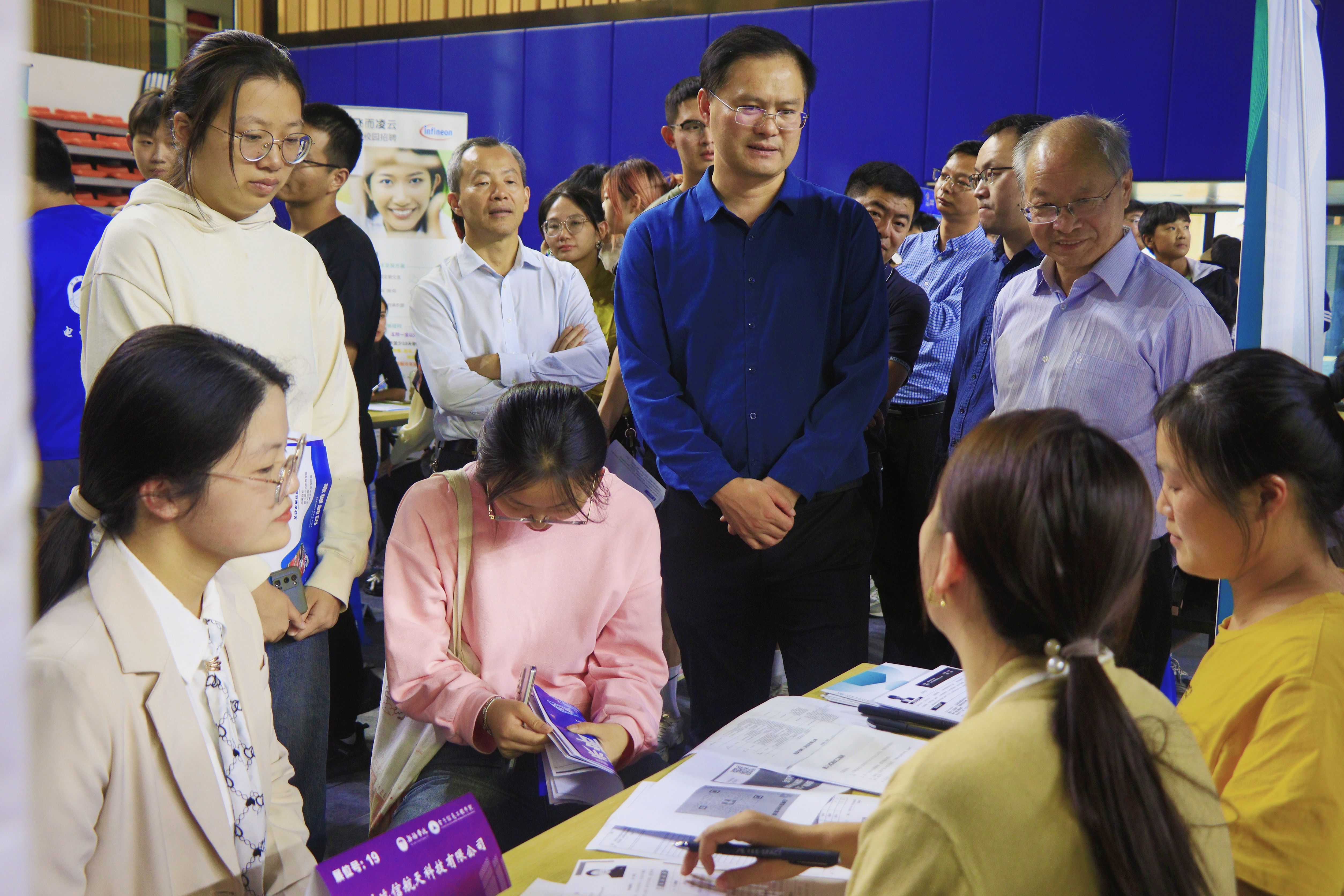 期间,副校长左同宇、学工处处长张灿龙、副处长陈凯峰、电子信息工程学院院长郭业才、副院长王伟亲临招聘会现场指导。左同宇与用人单位和求职学生亲切交谈,询问详细情况,了解当下行业发展趋势和用人单位的需求,表达了对各企业来校招聘的感谢,提出希望各企业提供更多的工作岗位,推动校企联合,共促发展,同时鼓励还未找到工作的毕业生好好把握机会,尽快找到自己心仪的工作。