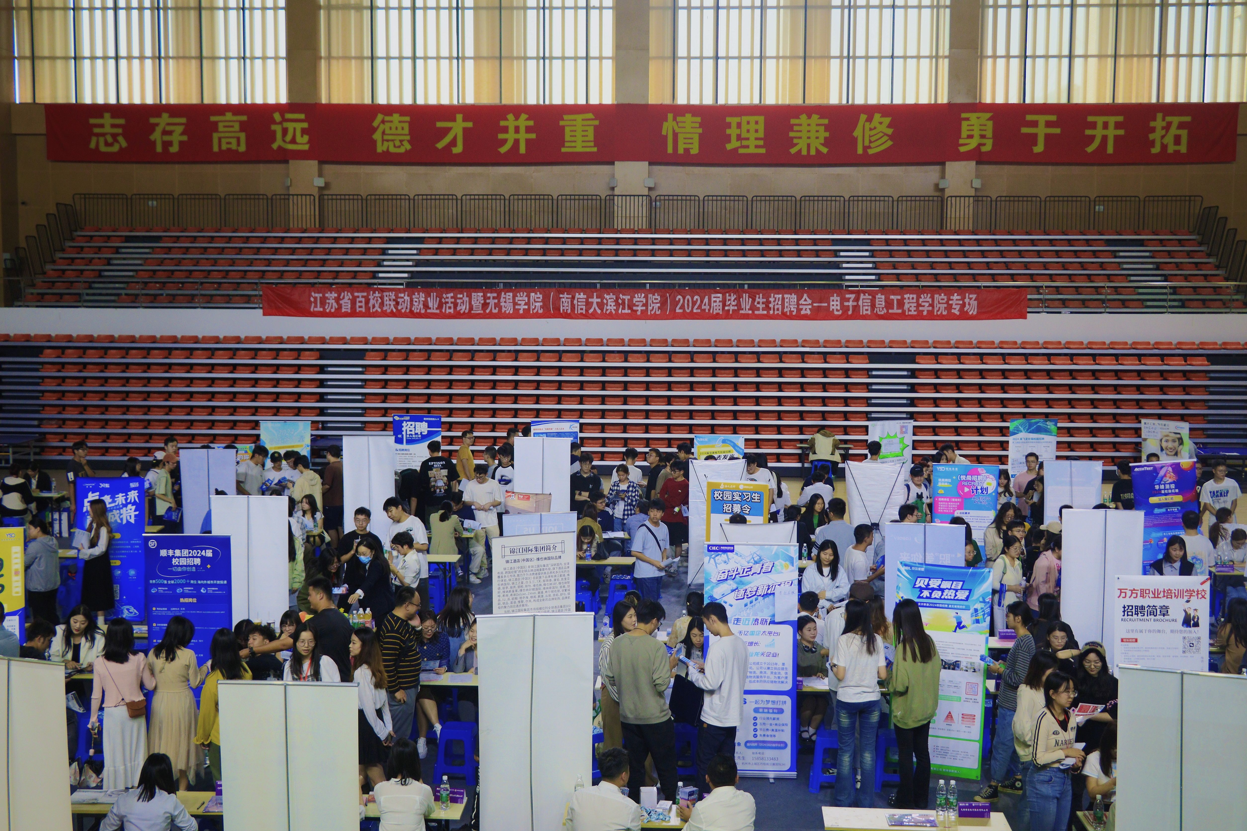 为深入学习贯彻党的二十大精神,落实党中央、国务院“稳就业”“保就业”决策部署,积极响应省高校招生就业指导服务中心“江苏省2024届高校毕业生百校联动就业活动”,拓宽学生就业渠道,助力毕业生顺利就业,10月18日,电子信息工程学院在主体育馆二楼举办“就在金秋,筑梦未来”电子信息工程学院专场招聘会。招聘会邀请中交遥感天域科技、盈帜科技等35家企业参会,覆盖电子研发、工艺、销售、质检、管理等多个领域,为学院应届毕业生提供了上百个岗位,电子信息工程学院2024届全体毕业生参加本次招聘会。
