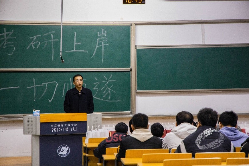 郭业才最后表示,学院将始终如一的坚持立德树人、坚持教学中心地位,以生为本,着力提高教育教学质量,合力做好2018级学生考研与就业工作。