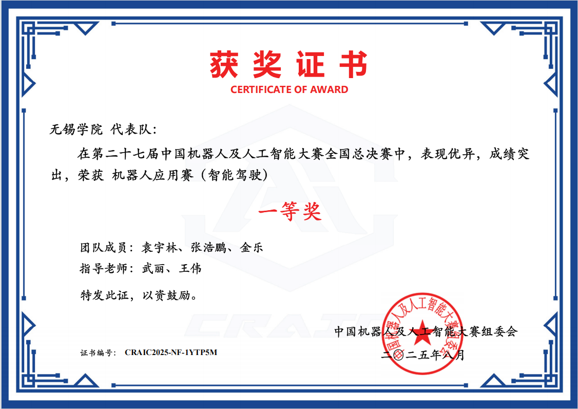 近年来,学校始终坚持“以赛促学、以赛促教、以赛促创” 的教育理念,积极鼓励学生参与各类学科竞赛,持续提升学生的创新精神、实践能力和团队协作意识。本次大赛取得佳绩,既是对师生辛勤付出与卓越能力的肯定,也进一步凸显学校在新工科专业建设和创新人才培养方面的显著成果。下一步,学校将继续深化教育教学改革,完善科创支持体系,激励更多学生积极参与科技创新实践,为机器人与人工智能领域发展贡献锡院智慧与力量。