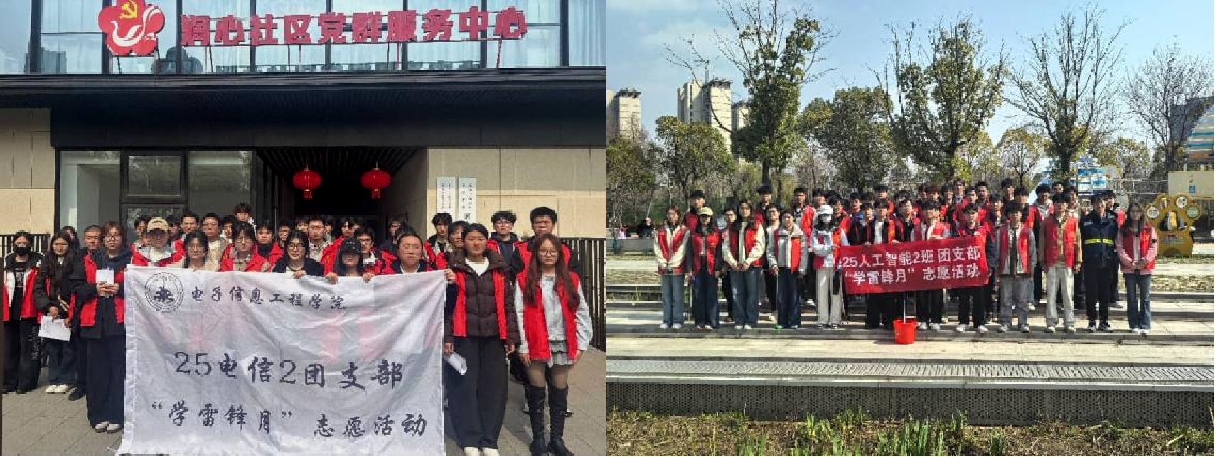 为深入践行雷锋精神,推动志愿服务走深走实,让奉献之花绽放在三月的春风里,电子信息工程学院&集成电路工程学院组织各团支部开展系列志愿服务活动。从校园到社区,从科普润童心到暖心助邻里,从环保宣讲到环境焕新,各支部紧跟步伐,将专业特色与志愿行动深度融合,用实际行动诠释新时代雷锋精神的内涵,让 “奉献、友爱、互助、进步” 的志愿精神蔚然成风。
