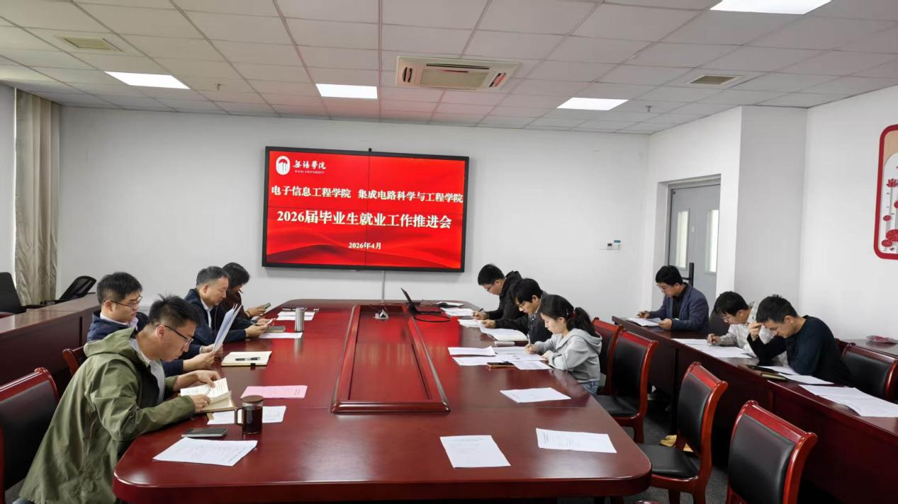 为全面落实学校2026届毕业生就业工作推进会精神,4月27日上午,电子信息工程学院(集成电路科学与工程学院)在思贤楼517会议室召开毕业生就业工作推进会。学院领导班子、各系主任、毕业班辅导员参会,会议由学院副书记张健主持。