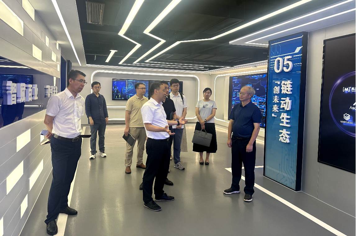 会前,郭业才一行实地参观了展示中心,详细听取了基地在算力构建、算力赋能、算力应用、算力调度等板块的全方位布局,了解了无锡人工智能协同创新基地在数字经济、数字生态、数字基础设施等方面的创新发展思路和特色亮点。(电子信息工程学院/文、图:夏易玄;审核:郭业才)