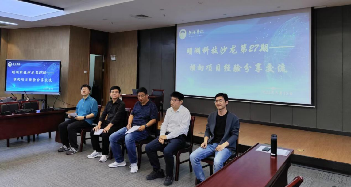 为进一步推进校企之间深度合作,有效提升横向科研质量,5月15日下午,我校在滨江大礼堂103学术报告厅举办了“明湖人才·科技沙龙第27期——横向项目经验分享交流会”。物联网工程学院院长助理阚希,电子信息工程学院光电信息科学与工程系主任刘罡,科技处处长助理袁杰以及自动化学院专任教师田浩受邀参加交流会。本次会议由电子信息工程学院人工智能与电子工程系系主任王绶玙主持。